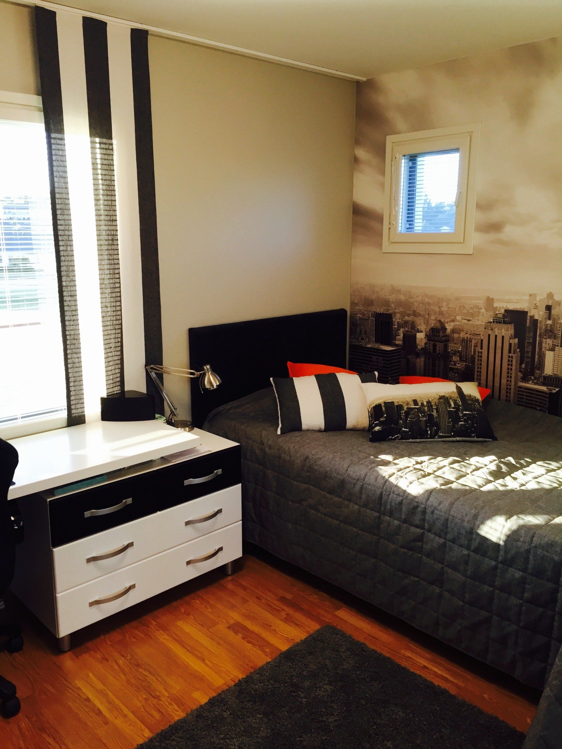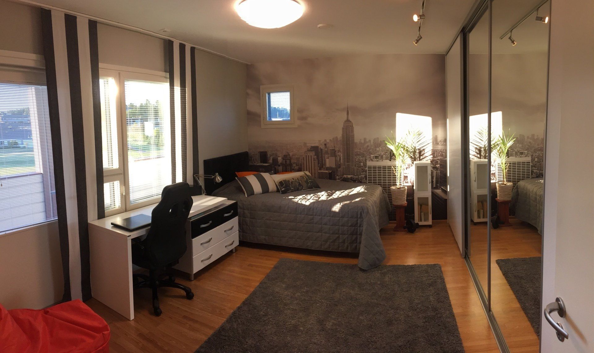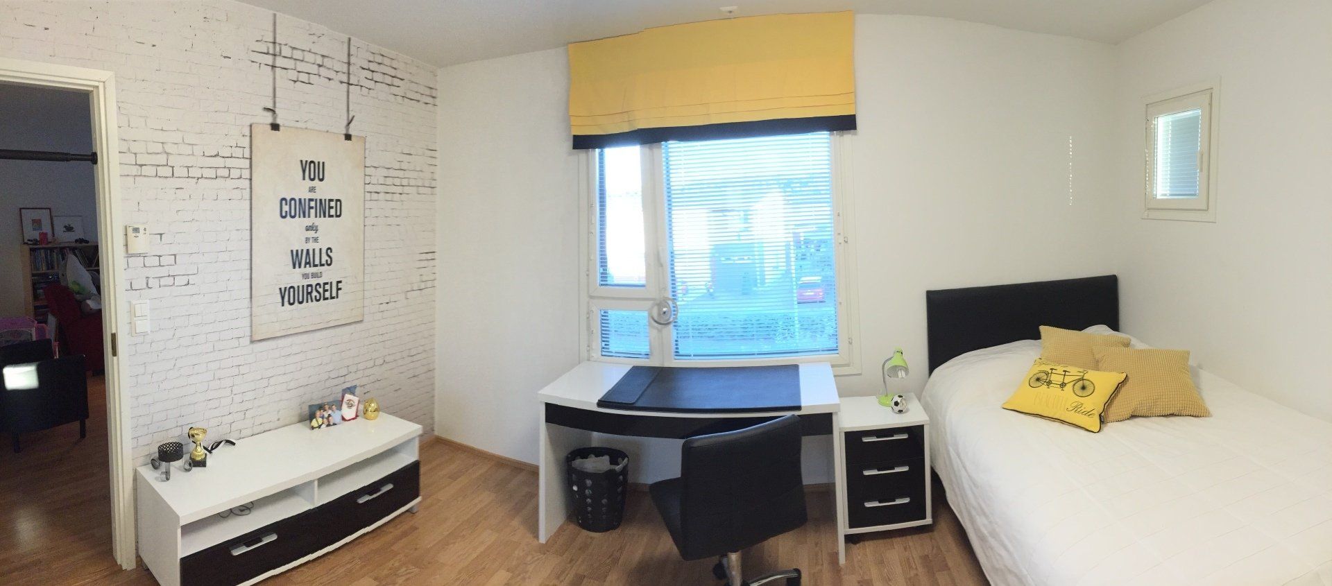 Kolmen nuoren huoneen sisustus päivitettiin seinäpintojen, kalusteiden, tekstiilien ja valaistuksen osalta. Suunnittelussa otettiin huomioon jokaisen oma lempiväri, yhdessä oranssi, yhdessä keltainen ja yhdessä pinkki. Hauskat tapetit toimivat huoneen keskipisteenä. Lopputuloksena huoneet, joihin nuoret ovat tyytyväisiä.