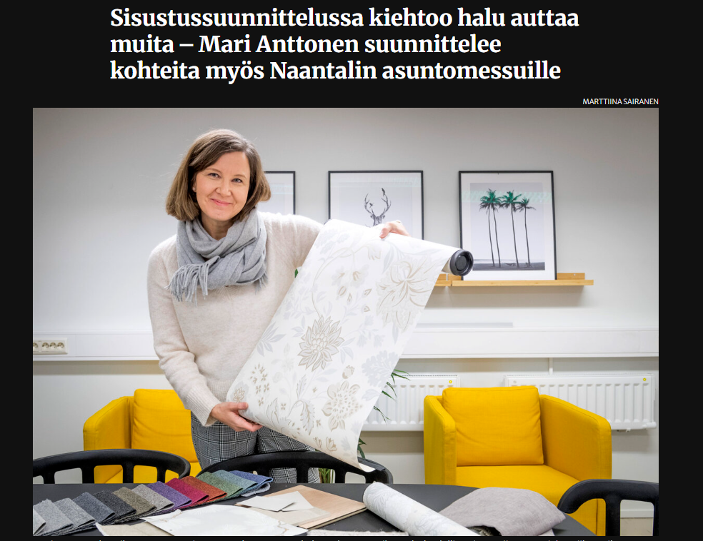Olen Mari Anttonen, sisustussuunnittelija ja Suunnittelutoimisto M interiorin perustaja. Yritys on perustettu vuonna 2012. Toiminta-alueeni on pääasiassa Turun seutu, mutta mielelläni otan projekteja vastaan myös muualta Suomesta.